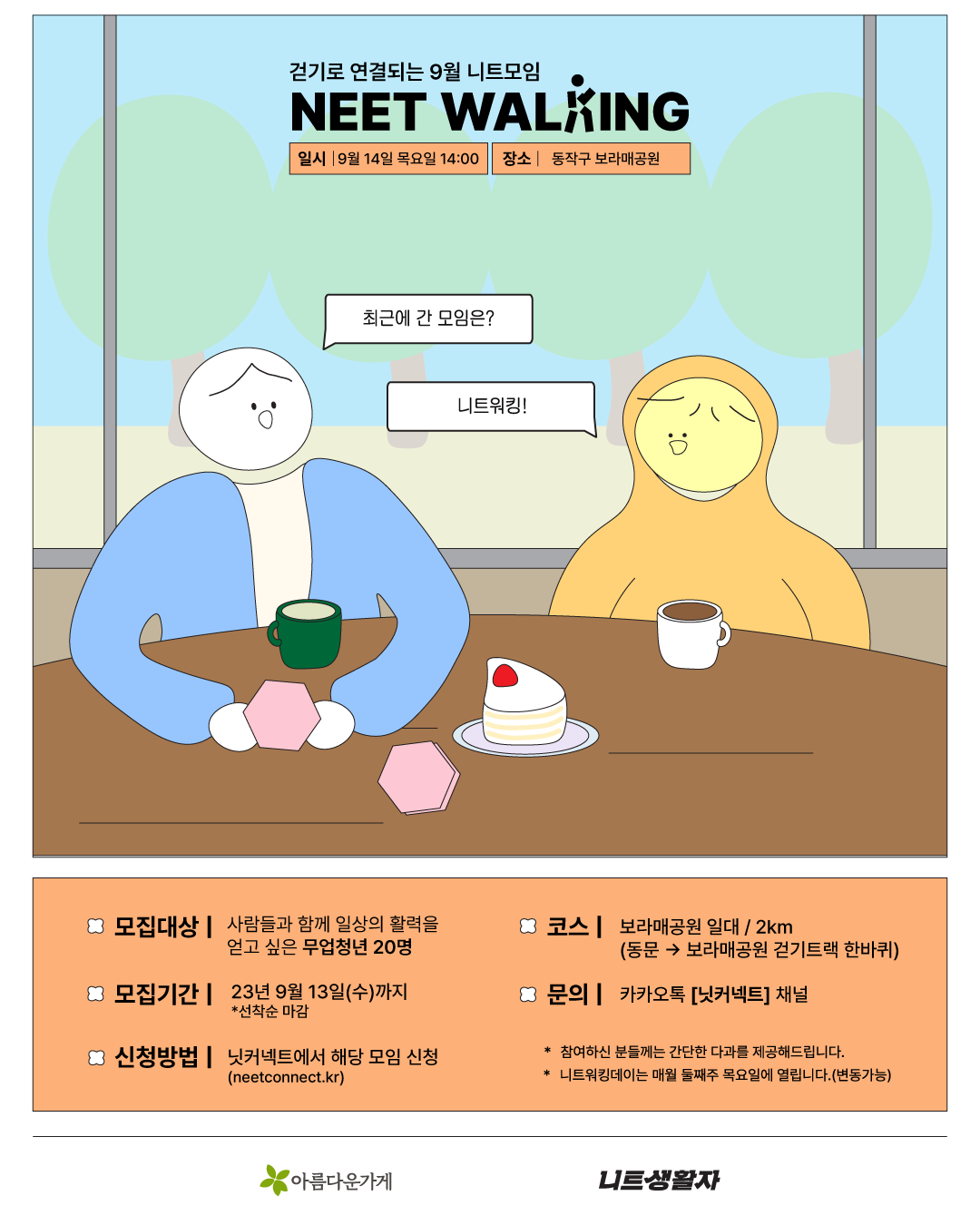 ✔모이는 곳 : 보라매공원 동문 앞 (보라매병원역 1번 출구에서 도보 2분)