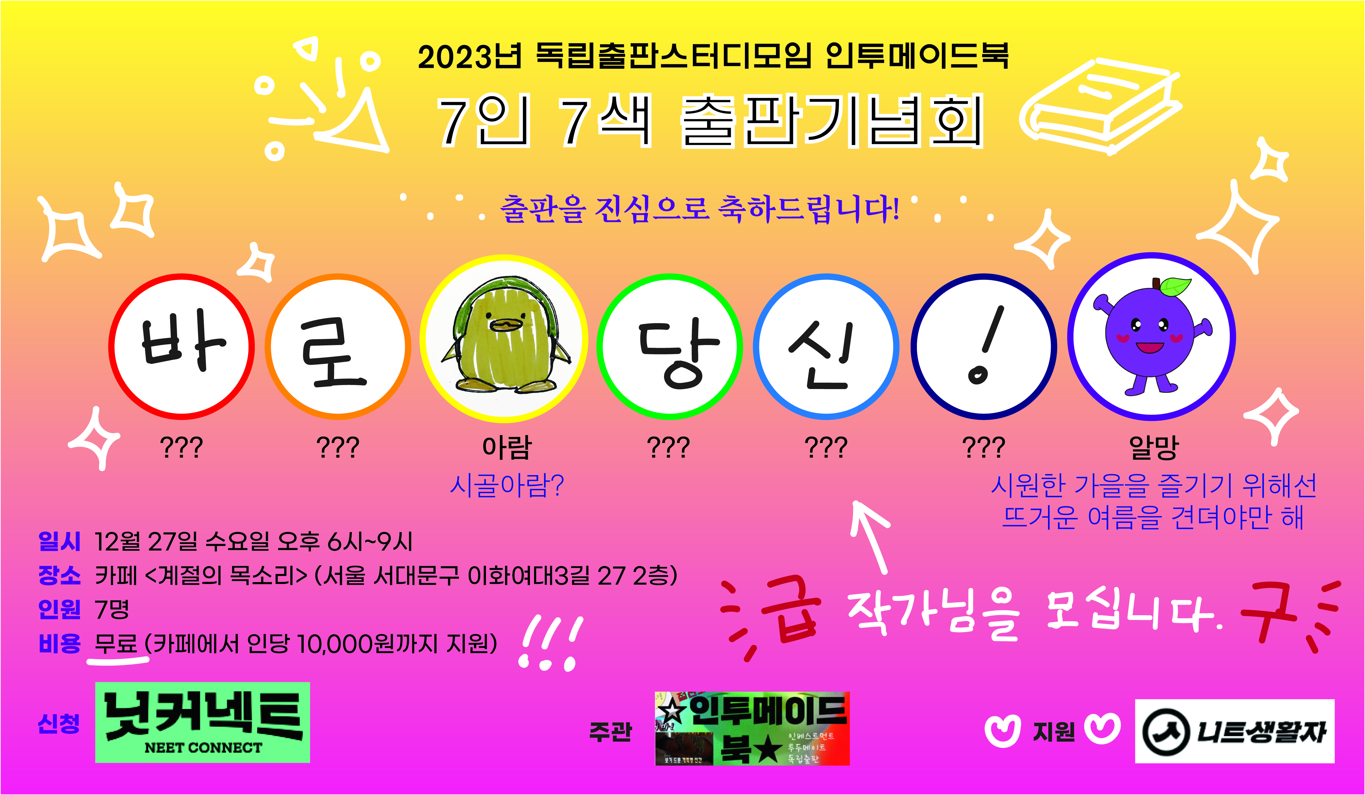 🎉2023년 7인 7색 독립출판기념회 행사순서🎉