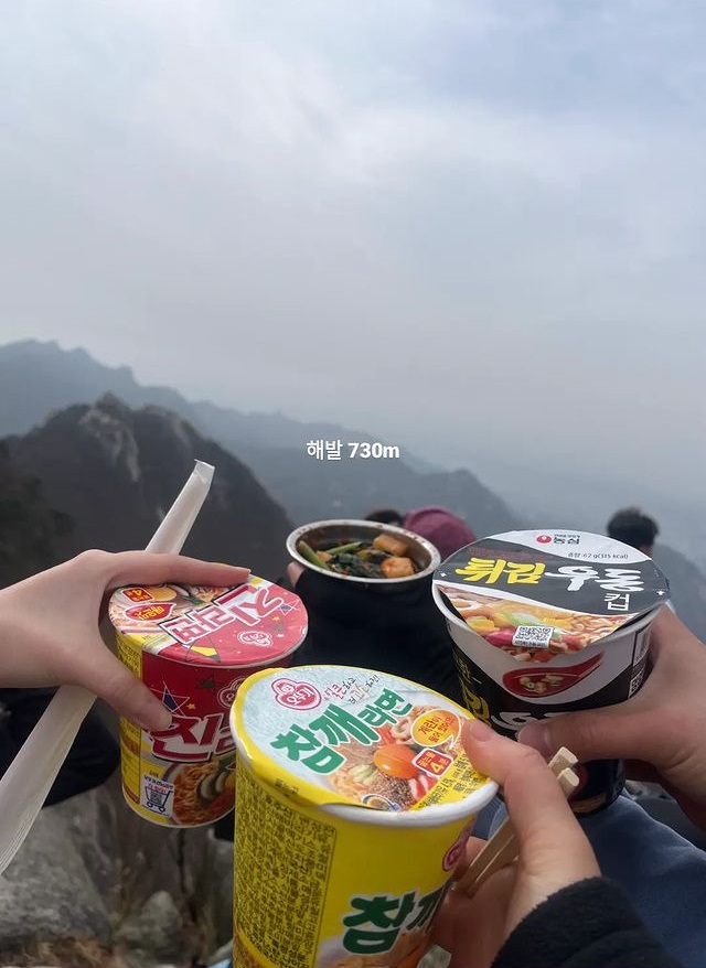 오후 1시 정상 부근에 도착, 뜨끈-한 컵라면 먹기