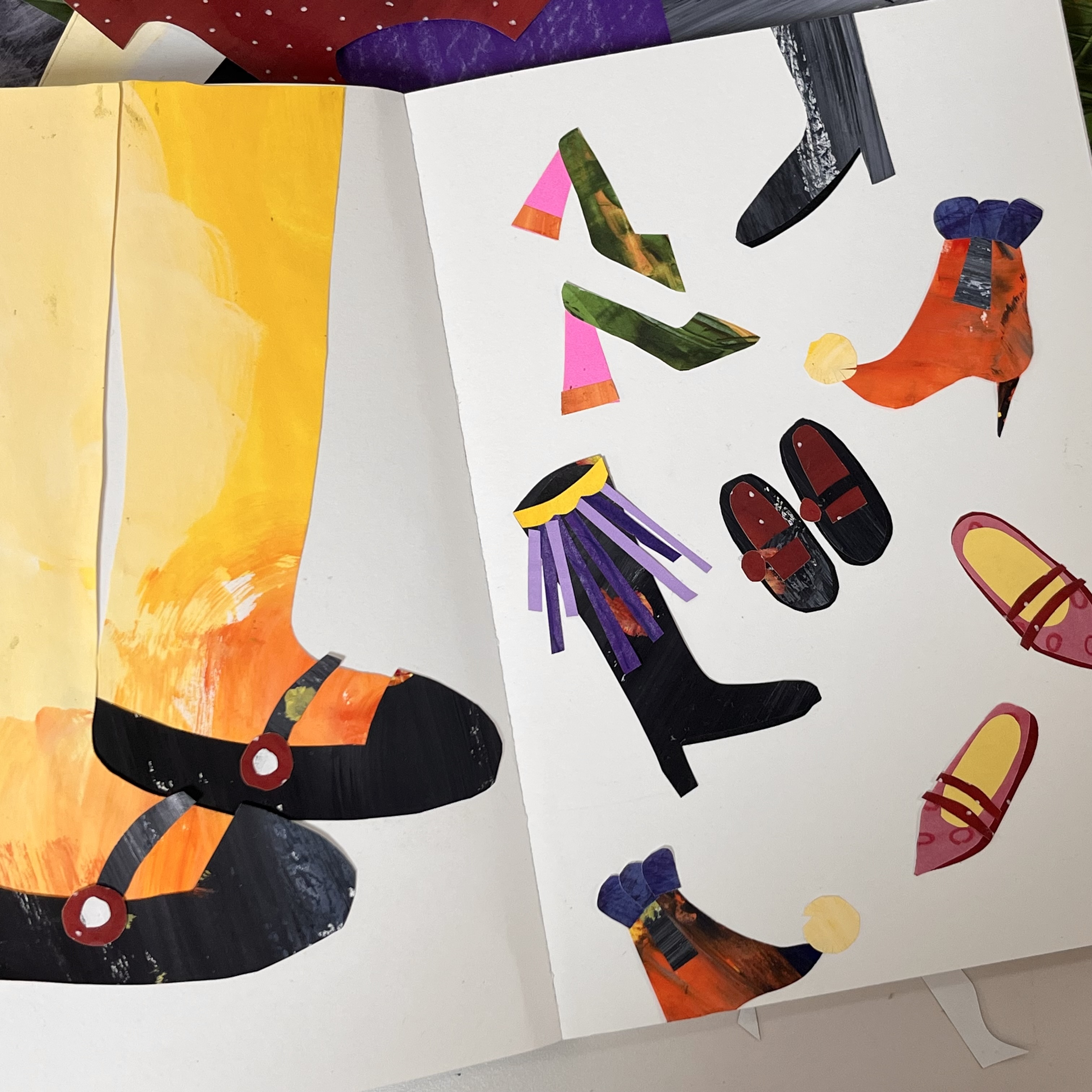 3. 우리가 만든 색지로 콜라주 작업을 해요.