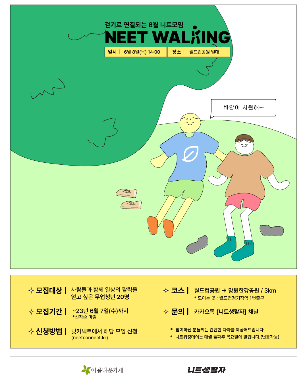 ✔모이는 곳 : 월드컵경기장역 1번 출구 앞 (오픈카톡방에서 자세히 안내할 예정)